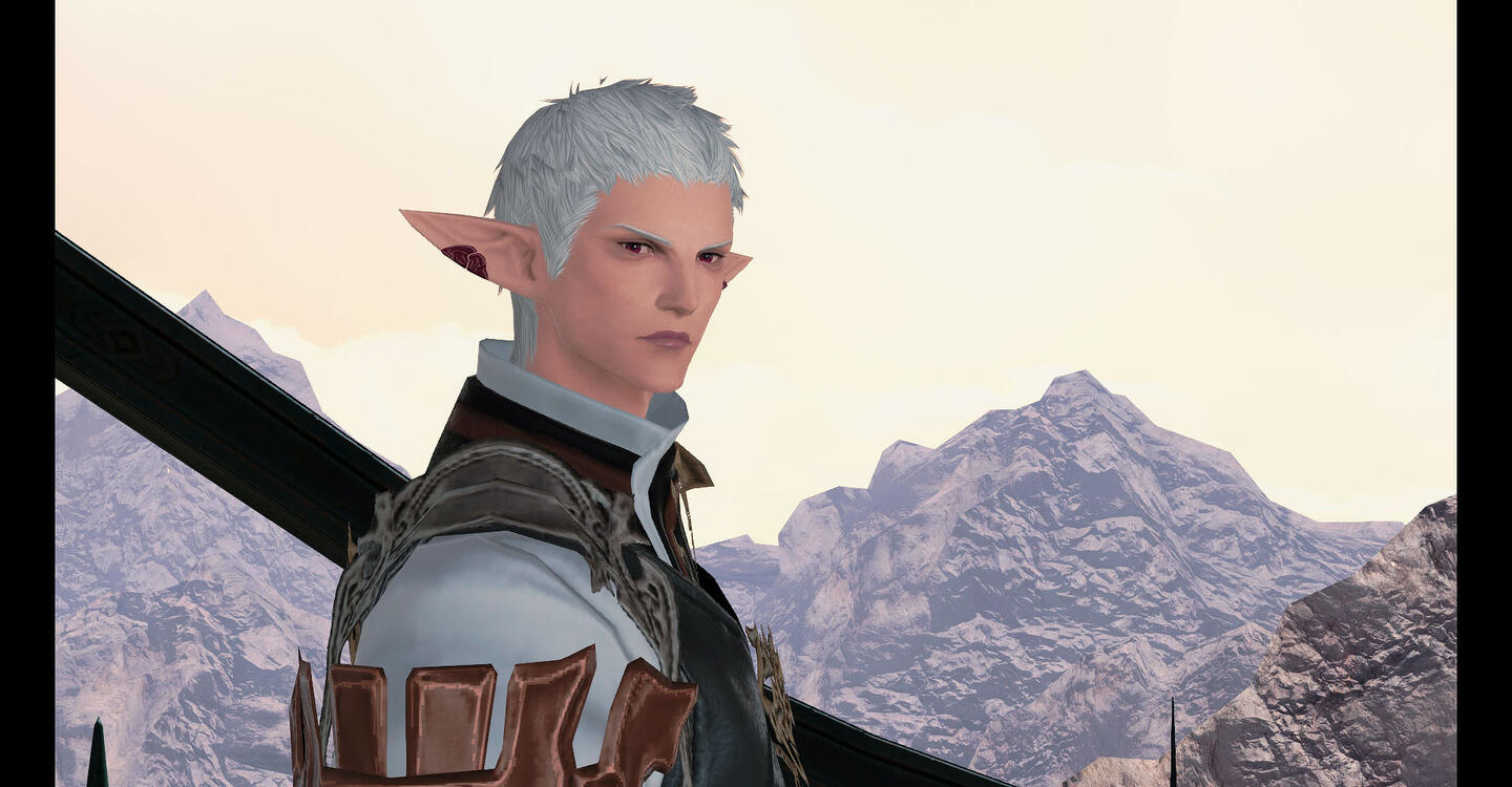 Seemingly cold and aloof, this burn and battle scarred albino elezen of Ishgardian origins makes his home in Gridania. He serves within the Adders but can frequently be found serving as a liaison to the other Grand Companies of Eorzea, much to his dismay. A free paladin and a healer of no mean skill, he lends his aid where needed, showing surprising compassion for a man of so few words, and those that he does speak are hoarse and strained at best. A survivor of the Calamity at the Battle of Carteneau, he has the thousand mile stare of a veteran who has seen far too much and carries the ghosts of those he has lost within his very soul.